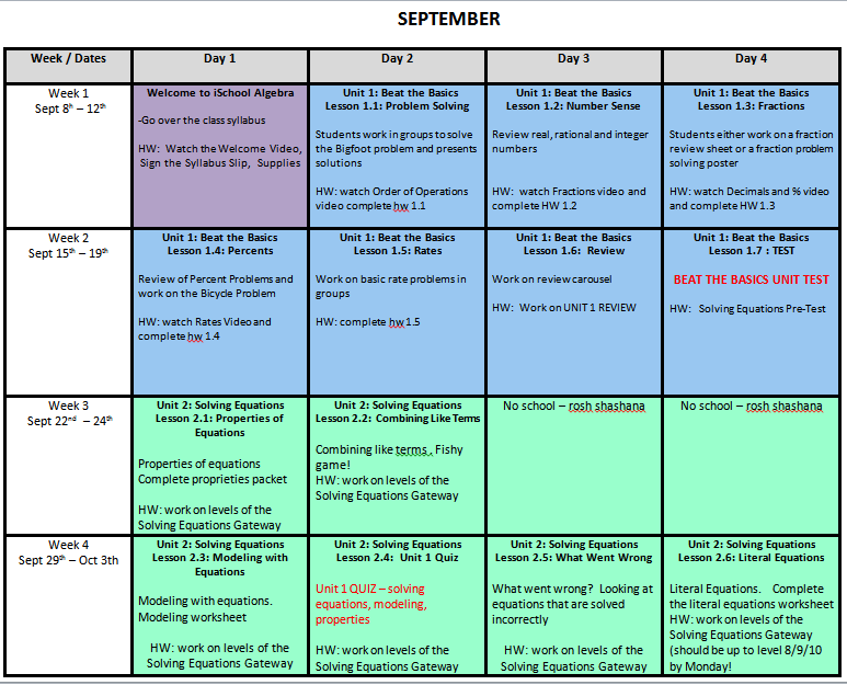 Algebra Calendar
