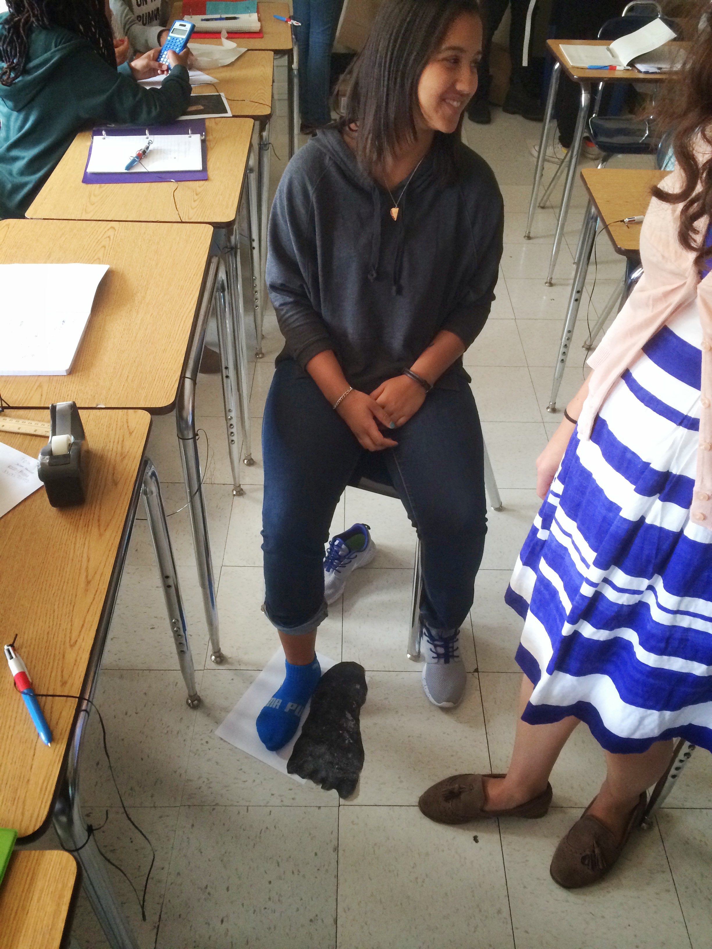 Jaileen uses her own foot to determine the height of bigfoot!